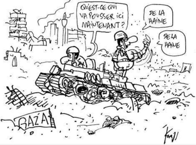 بدون تعليق ، الرسم يتحدث بشفافية عن جنود الإحتلال والكراهية.