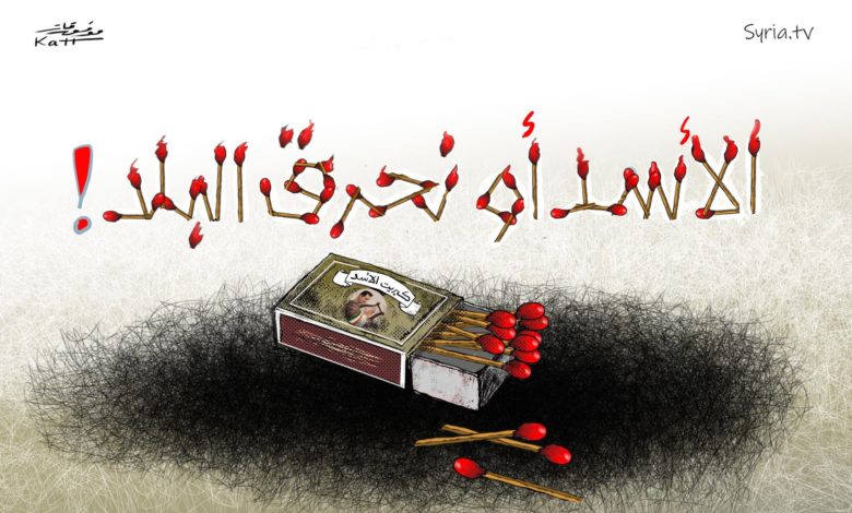 بدون تعليق ، الرسم يتحدث بشفافية “الأسد او نحرق البلد”