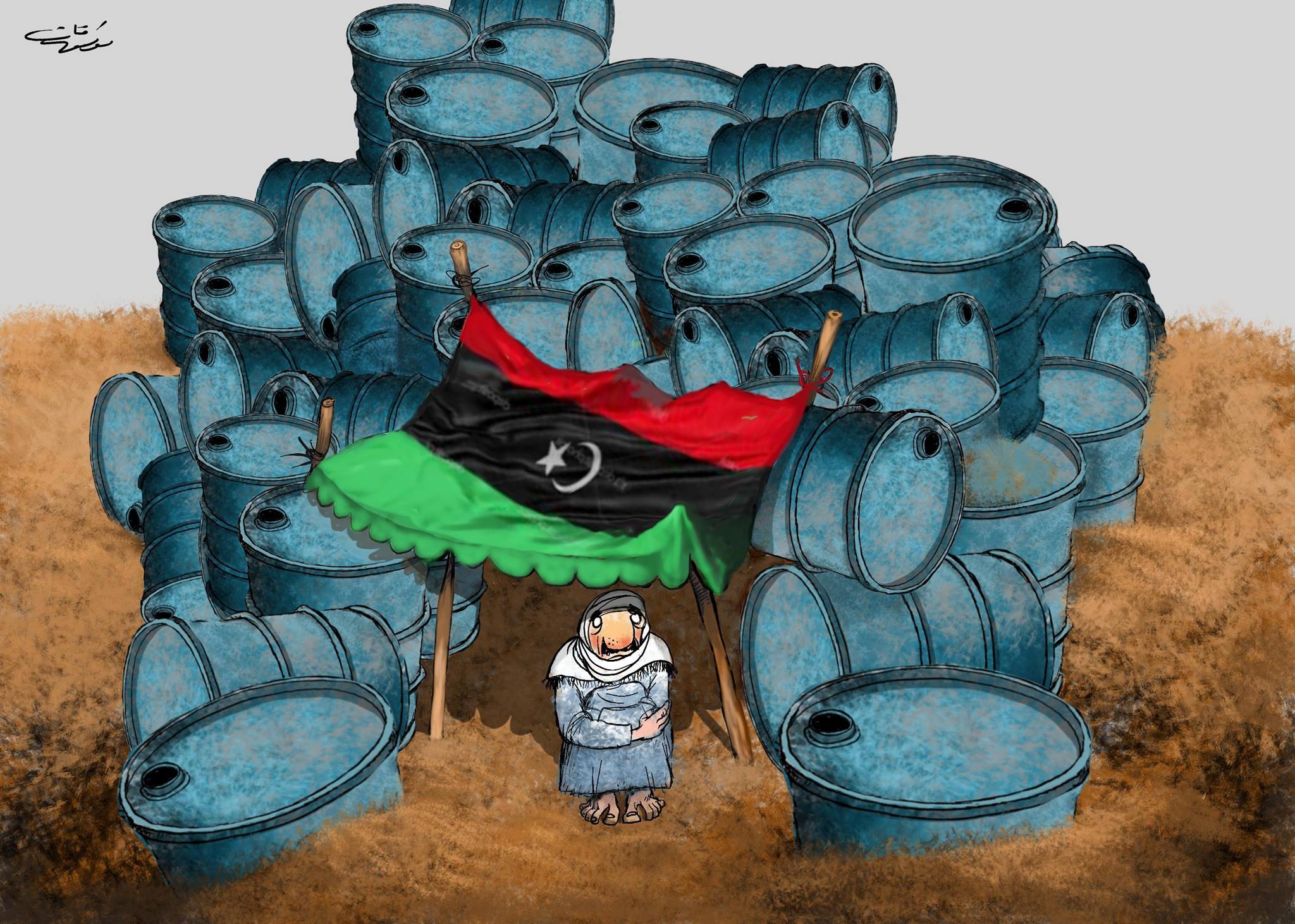 بدون تعليق ، الرسم يتحدث بوضوح سرقة النفط الليبي ووضع المواطن الليبي.