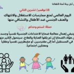 على مدار أسبوع، وبالتزامن مع اليوم العالمي لمنع ممارسات الاستغلال والانتهاك والعنف الجنسي ضد الأطفال والتشافي منها، والموافق 18 نوفمبر/ تشرين الثاني/ 2024م، نظمت مؤسسة نداء لحماية الأطفال من الاستغلال الجنسي، وتحت شعار “لستم وحدكم”، حملة توعية خاصة بهذه المناسبة، موجّهة للأطفال من مختلف الفئات العمرية، ولعائلاتهم، وللفضاء العام للمجتمع.