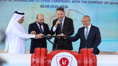 وأوضح وزير الطاقة السوري أن تدشين خط الغاز الإقليمي، الذي يربط سوريا بأذربيجان مروراً بتركيا، يمثل خطوة استراتيجية لتعزيز أمن الطاقة في البلاد، مشيراً إلى أن الخط سيؤمّن 6 ملايين متر مكعب من الغاز يومياً.