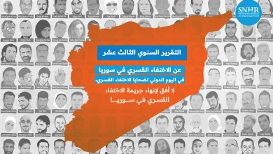 “الشَّبكة السورية لحقوق الإنسان” بمناسبة اليوم الدولي لمساندة ضحايا الاختفاء القسري في 30 آب، تصدر تقريرها السنوي الرابع عشر الموسَّع عن الاختفاء القسري بسوريا، مسلطة الضوء على واقع هذه الجريمة وآثارها المدمِّرة على مئات آلاف الضحايا وعائلاتهم. مع توصيات ورسائل للمنظمات الدولية ، جهد مشور يحسب لها.