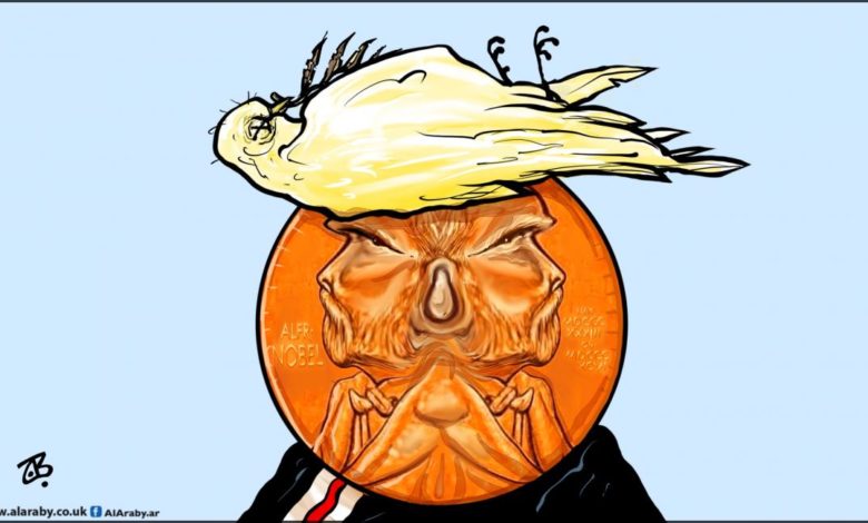 لا أحد يستحقّ جائزة نوبل للسلام في نظر دونالد ترامب غير دونالد ترامب. قال ذلك مراراً وتكراراً، وأعاد قوله يوم الثلاثاء 30 سبتمبر/ أيلول، أمام حشد من كبار الضبّاط، مضيفاً أنّه وضع حدّاً لستّ حروبٍ في ستّة أشهر، وأنّ عدم منحه هذه الجائزة سيكون إهانة كبرى لبلاده… ترامب الذي بنى حملاته الانتخابية على خطاب الكراهية، ورفع شعار الجدار العازل، وفرض العقوبات على شعوب بأكملها، وبات شريك حرب الإبادة في غزّة، قرّر فجأة أن ينصّب نفسَهُ حَمَامة سلام، وأن يضع اسمه في القائمة نفسها التي تضمّ مقاومين من أجل الحرية والكرامة وإنسانيّة الإنسان، مثل نيلسون مانديلا أو الأم تيريزا.