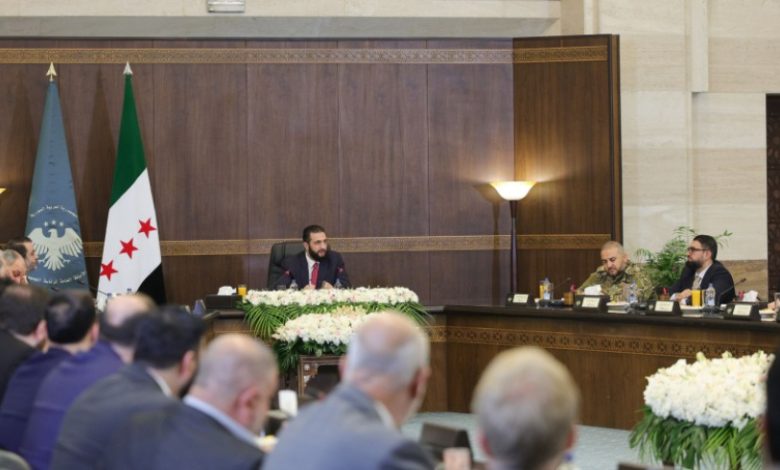 وأوضح المصطفى أن الاجتماع الذي عُقد في باب الهوى جاء ضمن جولة للرئيس شملت عدداً من المحافظات، بدأت من حمص مروراً بحماة وانتهاءً بإدلب، وناقش ملفات متعددة تتعلق بالأمن والسياسة والاقتصاد، إضافة إلى ملف السويداء وشمال شرقي سوريا و”قسد”.