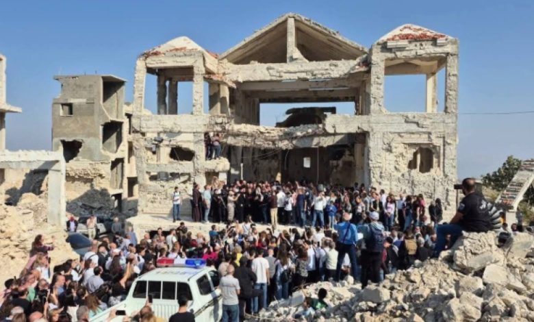 وتداول ناشطون على مواقع التواصل الاجتماعي صوراً من تجمّع واحتفالات الأهالي التي جالت كنائس القرية المدمّرة، بحضور رجال دين بارزين من الطائفة المسيحية، على رأسهم النائب الرسولي لطائفة اللاتين المسيحيين في سوريا، المطران حنا جلّوف، ومطران اللاذقيّة وتوابعها للروم الأرثوذكس، المطران أثناسيوس فهد.