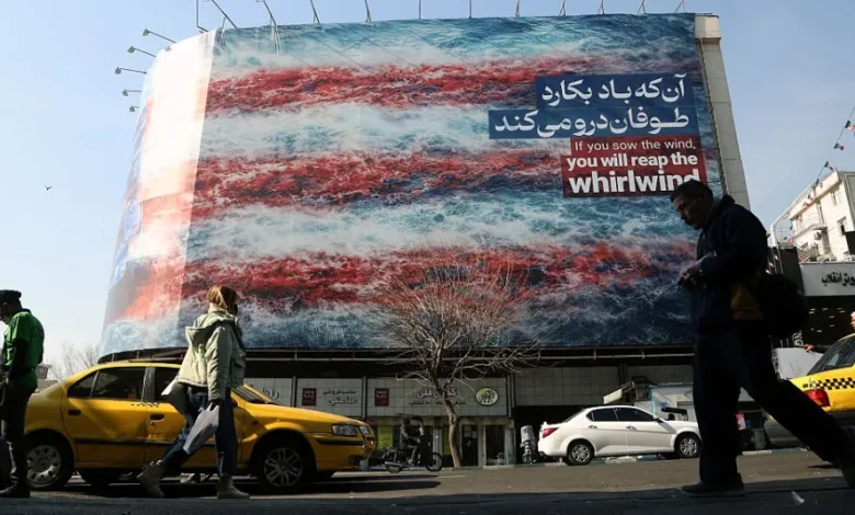 نقل المستشرق فاسيلي .. عن نيويورك تايمز قولها إن ترامب وصف الواقع حول إيران بأنه “في وضع معلق”. وفي إطار حديثه عن الرد الإيراني وتحديه للتصعيد الأميركي، أشار إلى ملصق احتجاجي ظهر يوم الأحد في ساحة “إنقلاب” بطهران، واعتبر بأنه كان رمزاً بصرياً للتصعيد. يصور الملصق حاملة طائرات محترقة، مصممة على شكل العلم الأميركي، مع تحذير باللغتين الفارسية والإنجليزية: “من يزرع الريح يحصد العاصفة”.