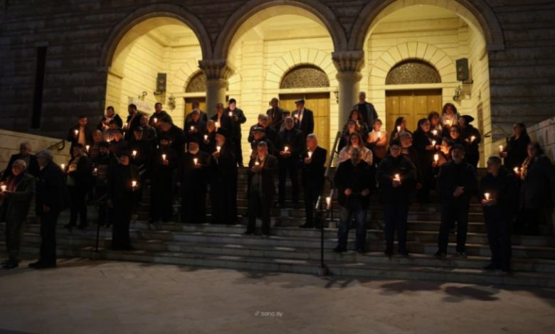 وبثت وكالة الأنباء السورية “سانا” صوراً من مشاركة أهالي المدينة بوقفة شموع أمام كنيسة حماة في حي المدينة، تخللها قرع لأجراس الكنيسة.