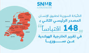 الشَّبكة السورية لحقوق الإنسان المصدر الرئيسي الثاني بـ 148 اقتباسًا في تقرير الخارجية الهولندية عن سوريا