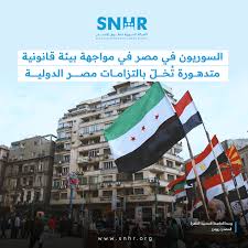 وثّقت الشَّبكة السورية لحقوق الإنسان تدهورًا ملموسًا في الأوضاع القانونية والإنسانية للسوريين المقيمين في جمهورية مصر العربية خلال الفترة الممتدة بين كانون الثاني/يناير ونيسان/أبريل 2026، تمثّل في احتجازات تعسفية طالت مسجّلين لدى المفوضية السامية للأمم المتحدة لشؤون اللاجئين، وتصاعد الضغوط غير المباشرة الدافعة نحو المغادرة القسرية، بما يُشكّل انتهاكًا صريحًا لالتزامات مصر بموجب اتفاقية اللاجئين لعام 1951، وعدد من معاهدات حقوق الإنسان الدولية التي صادقت عليها.
