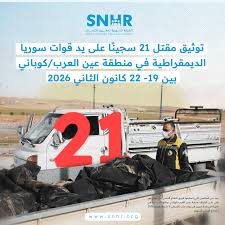 إقرأ المزيد...دمشق – أصدرت الشَّبكة السورية لحقوق الإنسان تقريرًا يوثق مقتل 21 سجينًا على يد قوات سوريا الديمقراطية في منطقة عين…